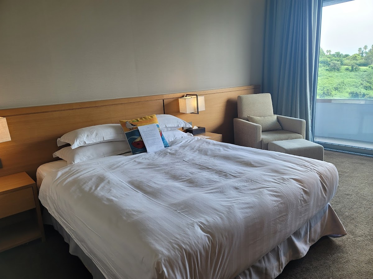 “ I booked this place for the Jeju views and couldn’t be happier. From the 7th-floor outlook you get it all – Hallasan with the rolling hills, ocean views, sunrise and sunset. Out on the street it feels properly Jeju – clean, leafy, and shady enough to walk around. Most of the big Jungmun attractions are within 4 km (only about 5–6 AUD in a cab), so it’s easy to get about and enjoy. Breakfast was a treat – loads of sunlight pouring into the open restaurant. The cliff-top pool with all that greenery around is something different too. Tips: Plenty of Korean hotels restrict pool use with time slots, which can be a bit of a shock. Here, apart from cleaning breaks and “night-club time” (10 AUD entry), you’re free to use it as much as you like. The place lives up to its “Nature” name – there are quirky little hidden corners everywhere. Breakfast even had a Jeju pork sausage that’d impress any traveller, plus a proper English Breakfast tea and good milk (unlike the watery taste you sometimes get with Korean milk). If you book a cliff-view room, you’re basically facing the pool. Just note you’ll hear the music during pool hours and especially at night-club time. On the flip side, the rooms facing the other way have full-length windows that are perfect for soaking up the sunset and the view of Jeju’s oreum (volcanic hills). A couple of downsides – the hot water and coffee station in the restaurant is a bit cramped, so you might bump into other guests, and the floating timber floor means you’ve got to watch your step. Not heaps of restaurants around, but the ones nearby (about 10 minutes on foot) are well-known, good value, and full of character. Handy little shop inside the hotel too, plus a bigger convenience store close by – perfect for grabbing an ice cream. ”